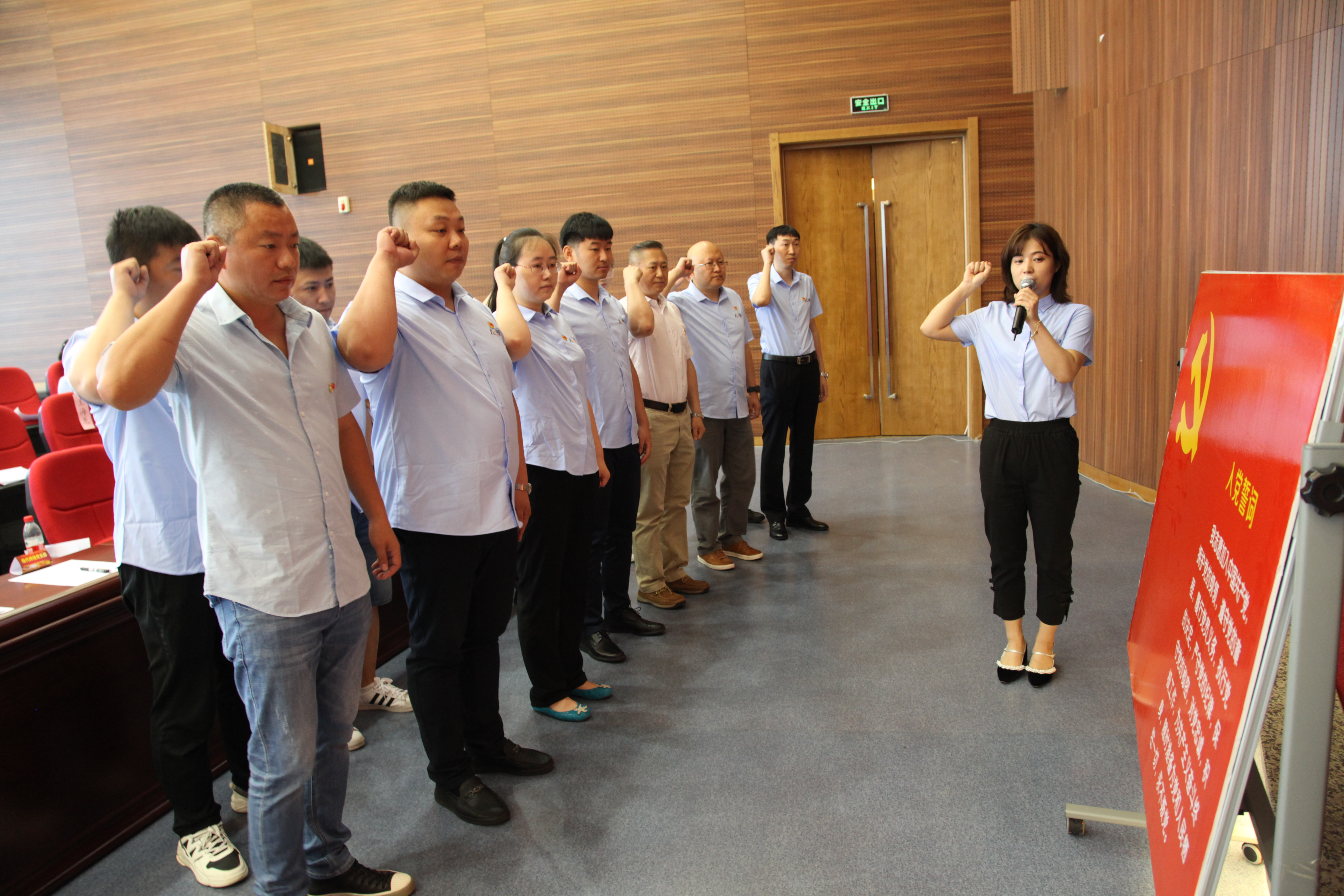 會議在莊嚴國歌聲中拉開序幕。2020、2021年新發展的黨員高舉右拳莊嚴宣誓,鏗鏘有力的誓言表達了為共產主義事業奮斗終身的決心。隨后,黨委委員、副總經理雷振代表黨委宣讀了先優表彰決定,領導班子成員為受到表彰的先進集體和優秀個人頒發獎牌。